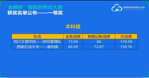 3月27日,财经管理学院学生在参加2020“金蝶杯”智能财务云大赛总决赛中获得一等奖荣誉称号。