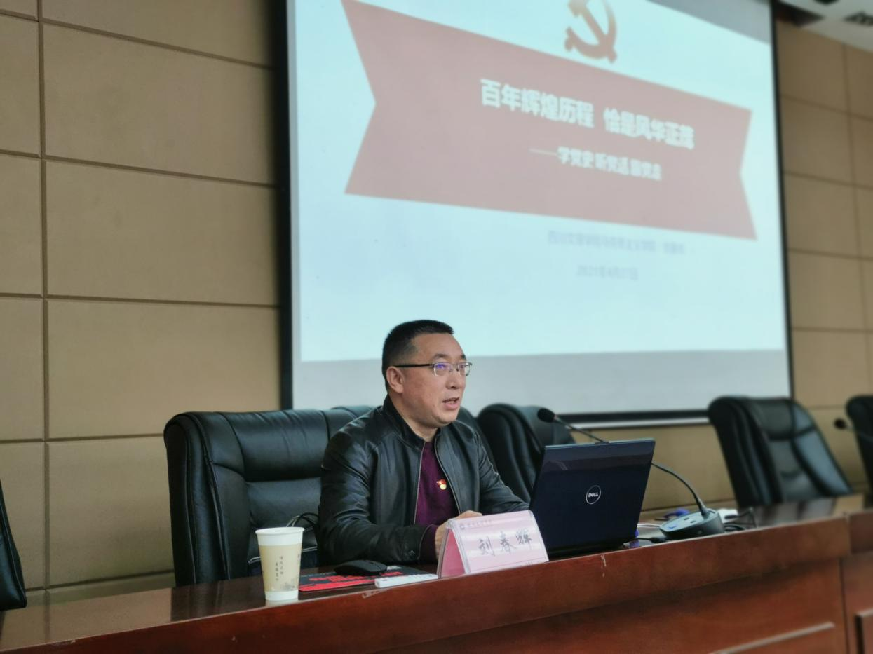 4月27日,马克思主义学院党总支书记刘春辉副教授为离退休党总支作题为“百年辉煌历程,恰是风华正茂——学党史、听党话、跟党走”的党史宣讲。讲座由离退休党总支书记张忠主持。离退休党总支全体在职人员和达州片区离退休教职工参加讲座。