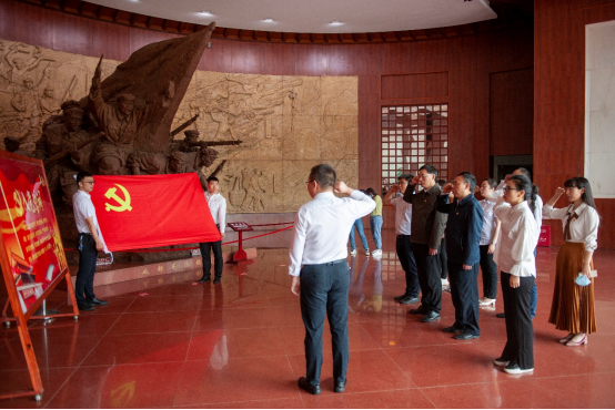 党委书记王成端带领支部全体党员在英烈纪念台前敬献鲜花,向革命先烈表达崇高的敬意。全体党员铿锵有力地面对党旗重温入党誓词,彰显了全体党员不忘初心、牢记使命的坚定政治信念。