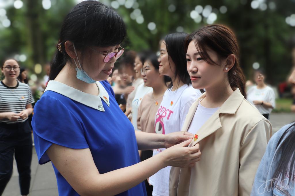 怀着对伟人无限崇敬和深切缅怀,全体党员同志面向邓小平铜像,郑重地三鞠躬,随后在伟人铜像前举行新党员入党宣誓、老党员重温入党誓词仪式。宣誓完毕,入党介绍人分别为预备党员同志佩戴党徽。