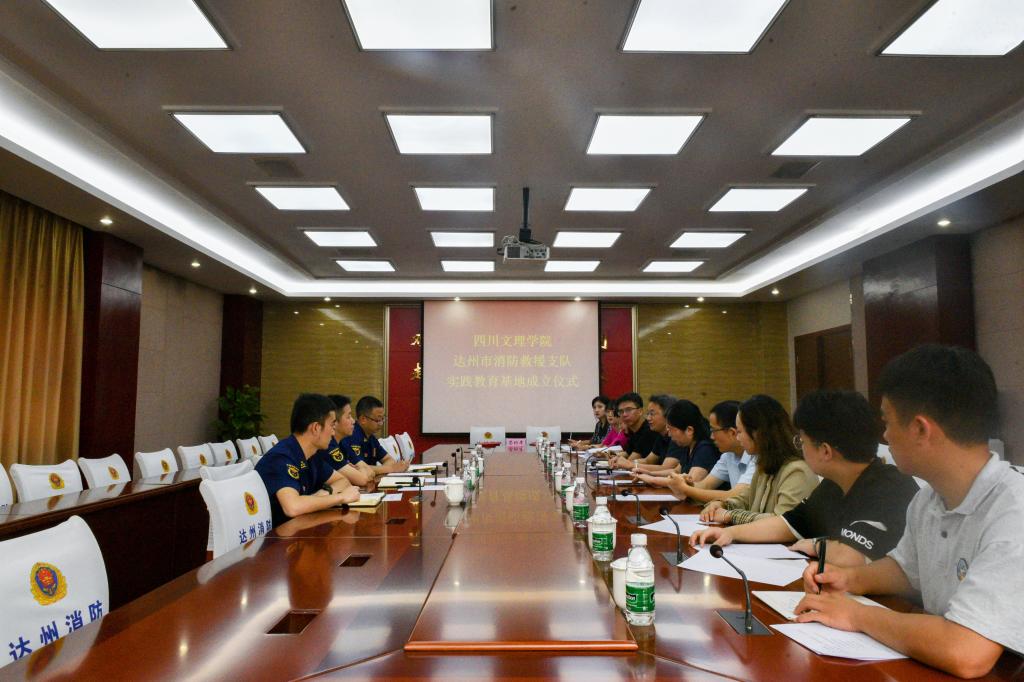 文学与传播学院院长曾宪文介绍文学与传播学院的基本情况和下一步实践教育基地建设工作计划,并对学院与消防救援支队的深度合作提出建议。
