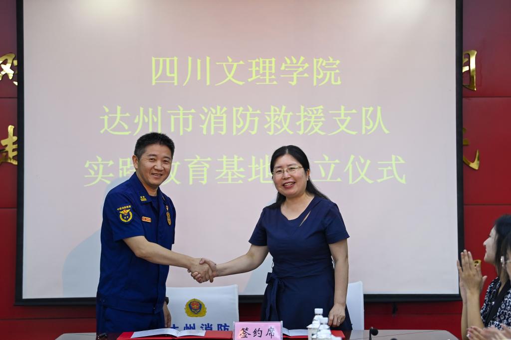 7月7日,学校与达州市消防救援支队实践教育基地签约仪式在达州市消防支队会议室举行,副校长程碧英、达州市消防救援支队政治委员吴志兵出席签约仪式。签约仪式由市消防救援支队政治部主任曾东主持。