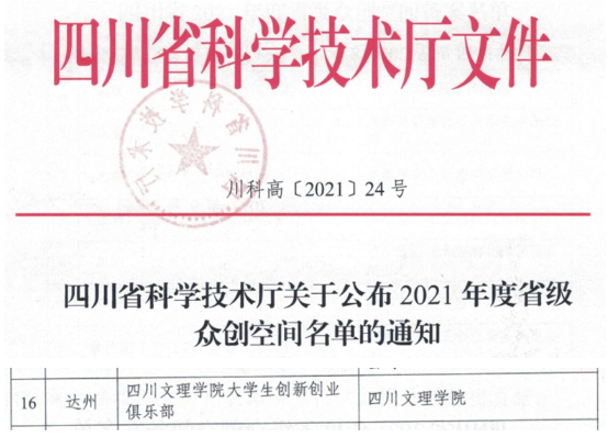 近日,四川省科技厅公布了2021年度四川省众创空间名单,pp电子大学生创新创业俱乐部获批“省级众创空间”的荣誉称号。这是继pp电子获批“省级大学生创新创业俱乐部”后,在创新创业方面取得的又一重要成果。