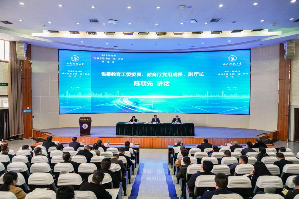 11月26日,川北片区高校“对标竞进,争创一流”活动推进会在西南科技大学举行。省教育工委委员、教育厅党组成员、副厅长陈朝先出席会议并讲话。副校长徐晓宗参加会议并代表学校在会上作交流发言。