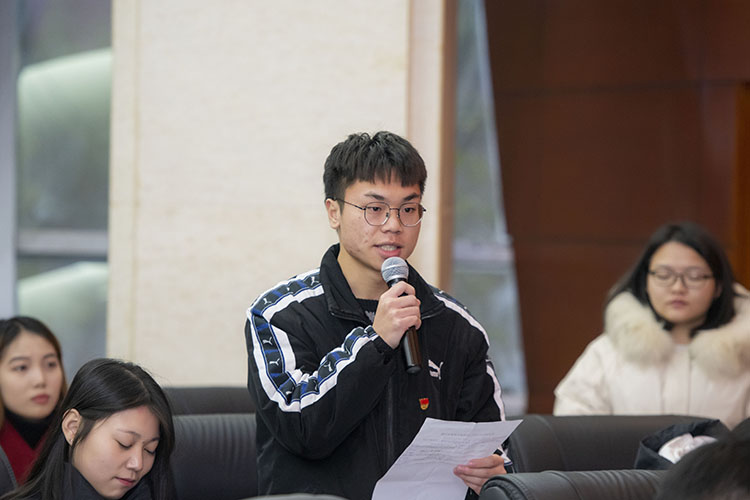 李壮成介绍座谈会相关准备情况;徐晓宗强调了道路安全、食品安全的重要性;邓杰说,学校会加强软硬件建设为同学们提供良好的环境;程碧英希望学生在加强学习学科知识的同时注重实践能力的培养。各职能部门负责人对学生代表提出的问题逐一进行回复和说明。