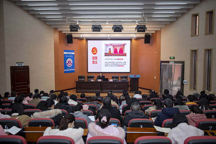 12月24日,党委副书记侯忠明在莲湖校区学术报告厅宣讲党的十九届六中全会和省委十一届十次全会精神。马克思主义学院党总支书记刘春辉持宣讲会。