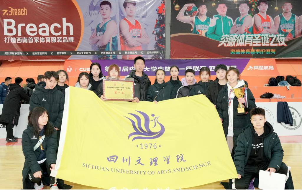 赛前,学校领导积极组织协调训练场地,确保参赛学生进行良好的技战术训练;小组赛中,第一场对阵四川农业大学队获得首胜,随后继续战胜成都中医药大学队后,以小组第一身份进入半决赛。在对阵宜宾学院的半决赛中,文理女篮仅用前三节时长便牢牢锁定胜局。在决赛中,队员们奋力厮杀。在第一节以12分之差落后的关键时刻,女篮主教练邓伟老师及时调整队员心态、鼓舞士气,最终力压对手西南医科大学女篮,以20分的大比分优势获得冠军。