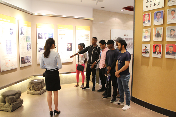 在校史陈列馆,百年兴替、薪火相传的历史画卷真实反映学校各个历史阶段的办学成就和历史经验。在主讲解员、助理讲解员和志愿讲解员的互动配合下,留学生被陈列馆里的图文、实物、影像资料所吸引,边听边问,追寻历 代师生筚路蓝缕、改革创新、奋发有为的历史足迹,感受到学校的优良传统 和办学精神,理解了学生主体、教师主导、环境育人、社会合作的办学思路 。