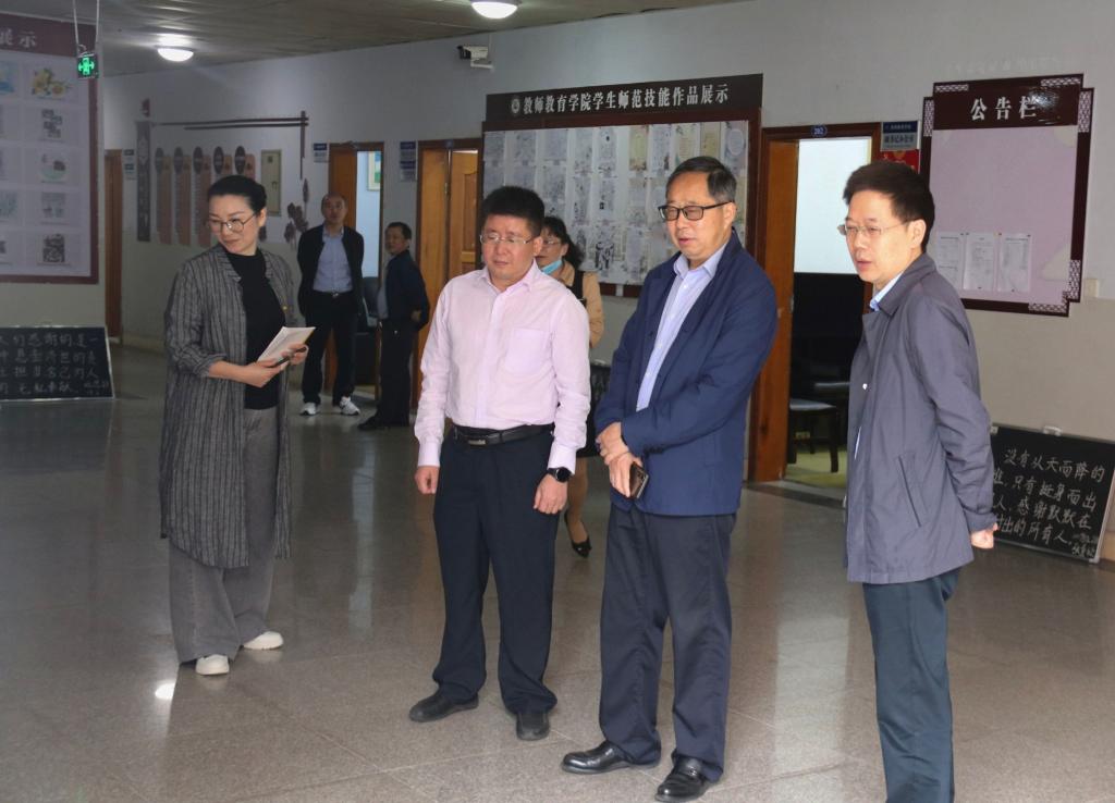 党委副书记、校长刁永锋,党委组织部部长涂德祥一行参观指导,并与学院老师、学生进行互动交流。“美术作品构图完整、色彩鲜明,艺术性与创造性兼具。书法作品美观大方,线条劲健,行笔流畅,体现了教师教育学院学科特色与亮点,展示了未来教师扎实的职业技能。”刁校长对本次活动给予了充分肯定。“一课一展”是展现教师教育学院师资风貌的重要途径,全院领导干部要持续推动该项活动走深走实,要以此为依托,明确中心、突出重点,立足高等教育内涵式发展的新使命,抓好学科专业建设,做优教育事业,以优质的教育管理、优良的学风班风迎接党的二十大和省第十二次党代会顺利召开。