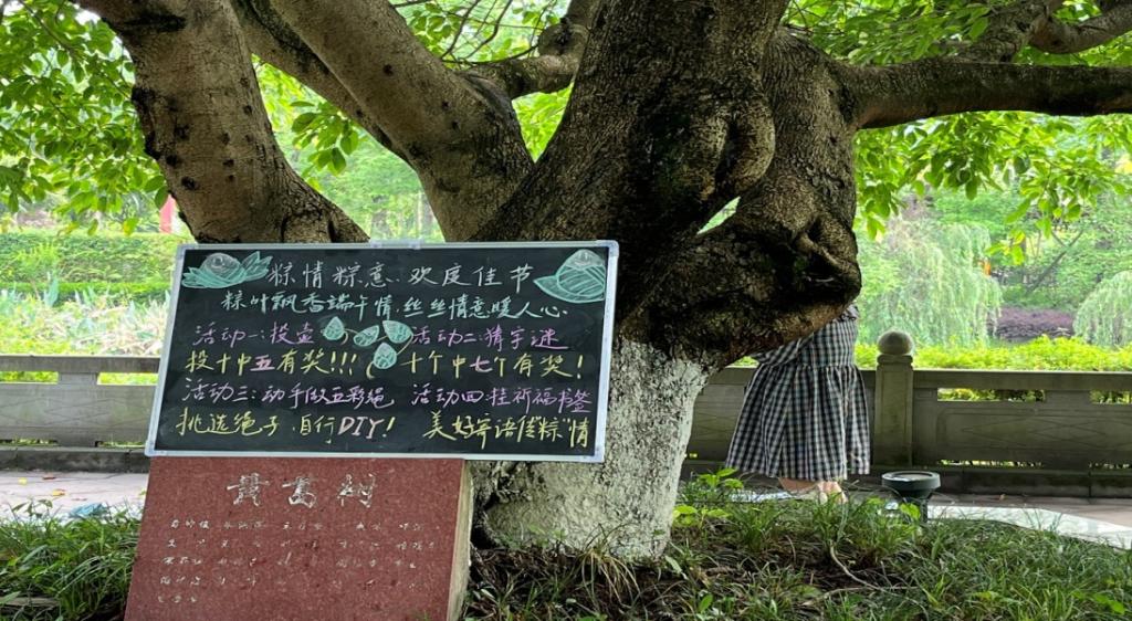 本次活动以游戏互动为主。在翠柳湖畔,闻讯而来的同学们有序地参加投壶、猜字谜、动手做五色绳以及挂祈福书签等活动,其中拥有悠久历史的“投壶”小游戏吸引了很多目光,大家排成长队,跃跃欲试。按照规则,体验者需站在距离箭筒两米之外进行投掷,投中指定数目后即可领取奖品。字谜竞猜处也非常热闹,同学们三五成群,相互研究谜题,猜中者的欢呼声不绝于耳。还有同学把写有自己愿望和祝福的卡片挂在榕树枝上;有的围坐在桌前,挑好自己喜欢的绳子,专心编织手绳。活动现场,到处都是欢声笑语,这份喜悦,融进了传统的端午佳节,充盈着六月的文理校园。