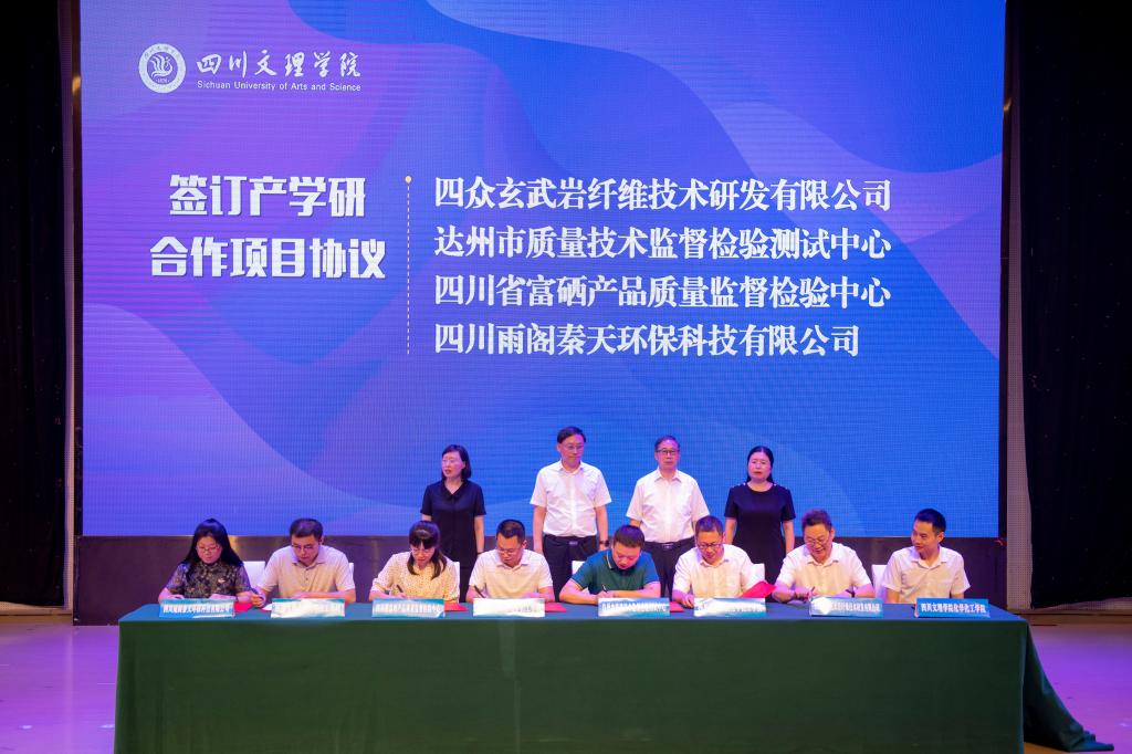 产学研合作论坛期间,四川省庆中科技有限公司、四川四众玄武岩纤维技术研发有限公司、四川炬原玄武岩纤维科技有限公司、四川航天拓达玄武岩纤维开发有限公司、四川川环科技股份有限公司、四川省富硒产品质量监督检验中心、达州市食品药品检验所、瓮福达州化工有限责任公司、四川雨阁秦天环保科技有限公司等企事业负责人和参会嘉宾分别围绕企事业单位需求、平台开放、人才需求、科研合作、基地建设等方面发言,为下一步合作积极建诤言、献良策、出实招。pp电子党委常委、党委组织部部长涂德祥教授也就人才培养、市场需求、科技创新、产教融合、品牌共建等方面与企事业代表进行了深入交流。