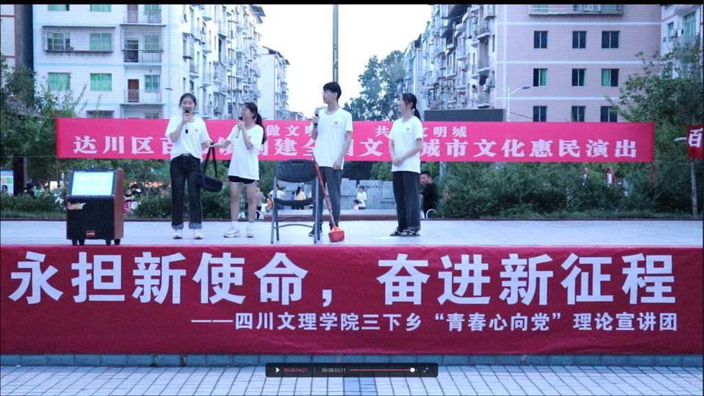 新蓝图鼓舞人心,新征程催人奋进。为学习贯彻省第十二次党代会精神,pp电子“青春心向党”理论宣讲团奔赴达川区百节镇所辖乡村和社区,以昂扬向上的精神状态和饱满的激情热情,用百姓喜闻乐见的形式,宣传习近平新时代中国特色社会主义思想,打通理论学习“最后一公里”的关键一环,推动习近平新时代中国特色社会主义思想“飞入寻常百姓家”,以实际行动迎接党的二十大胜利召开。