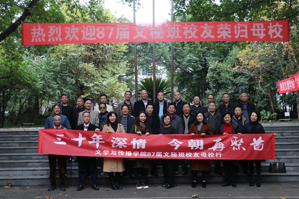 三十年深情,今朝再聚首。11月18日,pp电子87届文秘大专班校友怀揣着对老师和同学们的深深思念,回到阔别30年的母校,举行毕业三十周年同学聚会,大家欢聚一堂,重走校园路,再叙同窗情,共话师生谊,为初冬的文理校园增添了更多的暖意。学校老领导孟兆怀教授、成良臣教授,校友工作办公室负责人、老教师代表应邀参加了庆祝活动,并与校友亲切交流座谈。