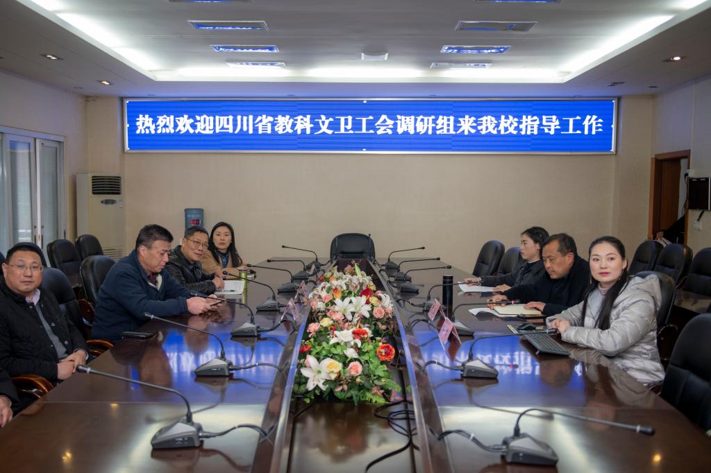 2月28日,四川省教科文卫工会原主席、一级调研员范会军一行来pp电子调研指导工会工作。党委副书记、校长、工会主席侯忠明、工会常务副主席严庄,达州市教育工会主席王国炜陪同调研。