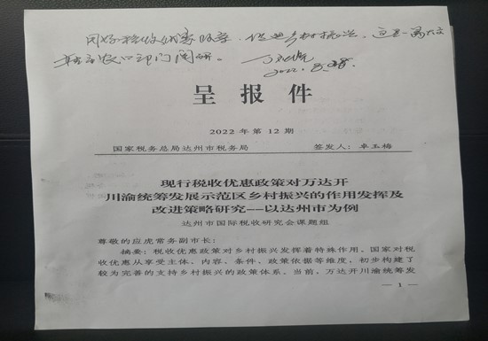 研究成果中指出,税收优惠政策对乡村振兴发挥着特殊作用。国家税务总局从享受主体、优惠内容、享受条件、政策依据等维度,初步构建了较为完善的支持乡村振兴的税收优惠政策体系。当前,万达开川渝统筹发展示范区在落实税收优惠政策时存在设计有待优化、执行存在偏差、纳税遵从度有待提升等突出问题,必须在促进税收优惠政策融合、加大减税降费政策力度、促进税收优惠政策体系建设几个方面进行改进,才能更加有效推动万达开川渝统筹发展示范区的乡村振兴。