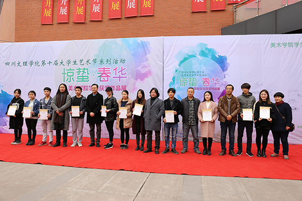 2月28日下午,“惊蛰·春华”美术学院学生获奖作品展在学校艺术传媒大楼广场开幕。副校长李壮成出席并宣布作品展开幕,机关职能部门负责人及师生三百余人到场观展。