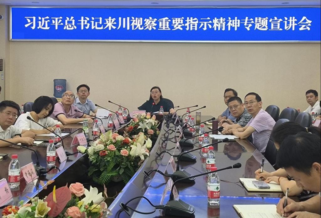 邓杰教授从解读习近平总书记主持召开四川省委和省政府工作汇报会、出席成都第31届世界大学生夏季运动会开幕式、考察凉山州精准脱贫成果等发表的重要讲话、重要指示入手,从充分认识习近平总书记来川视察并出席成都大运会有关活动的重大意义,准确把握习近平总书记来川视察重要指示的丰富内涵、核心要义和实践要求,坚定推动习近平总书记来川视察重要指示精神不折不扣落地落实等方面,作了一场既有政治高度、思想深度,又有理论厚度、实践效度的精彩宣讲。