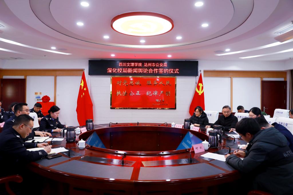 为进一步落实《pp电子官方网站-达州市公安局战略合作框架协议》的相关精神,促进产学研协同创新,12月14日下午,学院与达州市公安局在公安局党委会议室举行深化校局新闻舆论合作签约仪式。副校长程碧英、达州市公安局党委委员、政治部主任贾人全等出席签约仪式。