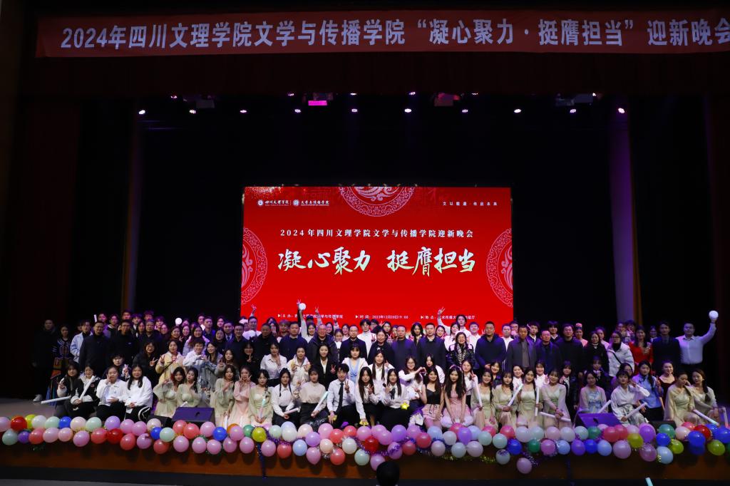 12月20日晚,文学与传播学院在莲湖校区艺术传媒楼多功能厅举行以“凝心聚力,挺膺担当”为主题的迎新晚会,学校党委副书记、纪委书记帅胤,副校长徐晓宗、程碧英出席,相关职能部门负责人及达州市高级中学、通川区第七中学、通川区第八中学、达州公安局等单位嘉宾和学院全体师生到场观看。