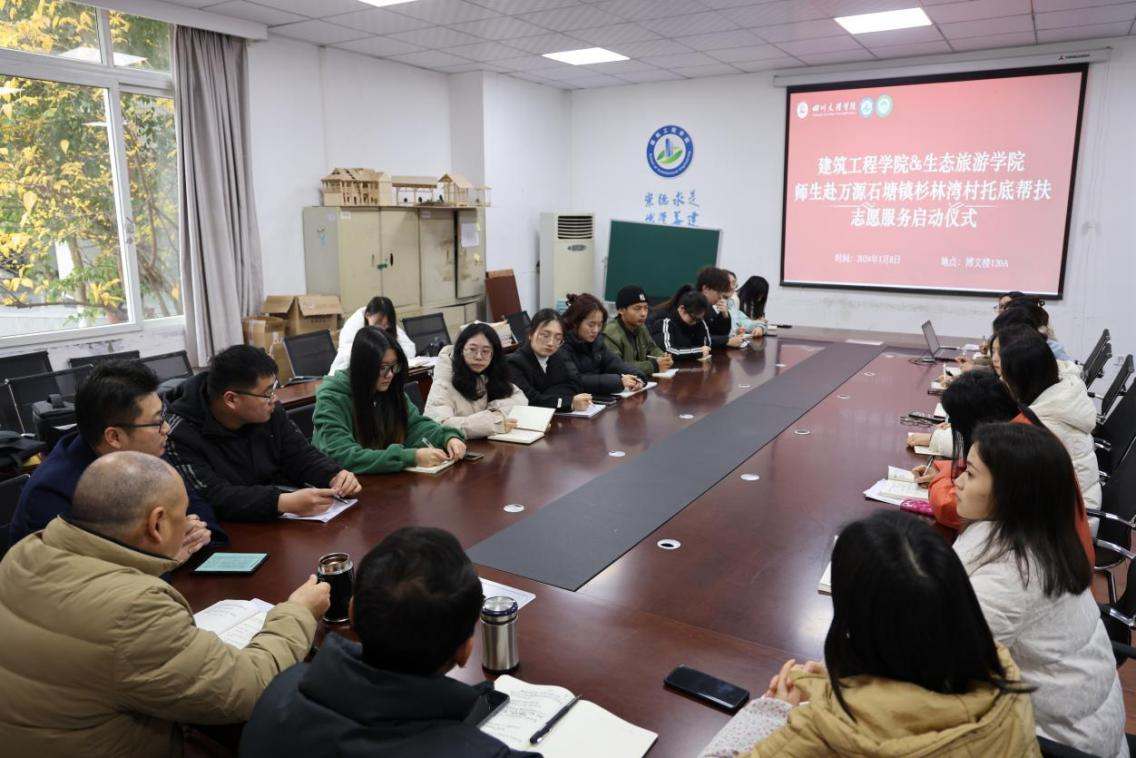 1月8日下午,建筑工程学院、生态旅游学院举行万源石塘镇杉林湾村托底帮扶志愿活动启动仪式,学院师生组成的规划团队将为杉林湾村进行规划设计。