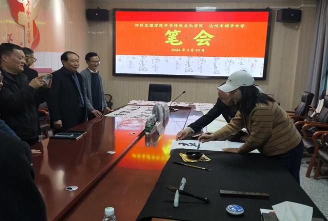 3月20日,党委副书记(主持工作)秦静、副院长熊明川同书法学专业和文化产业管理专业教师一行九人,前往达州市耀华中学开展书法美育交流会暨访企拓岗活动。