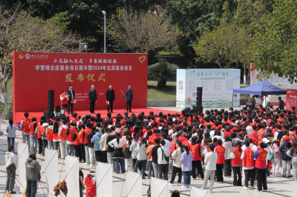 3月22日,pp电子“小我融入大我·青春献给祖国”学雷锋志愿服务项目展示暨2024年志愿服务项目发布仪式在莲湖校区稻香广场举行。副校长徐晓宗出席并讲话,宣传部部长周頔宣读2024年志愿服务项目立项文件,校团委书记成华军主持发布仪式。