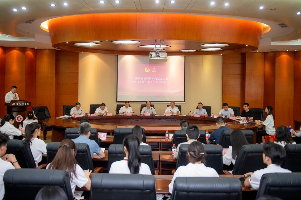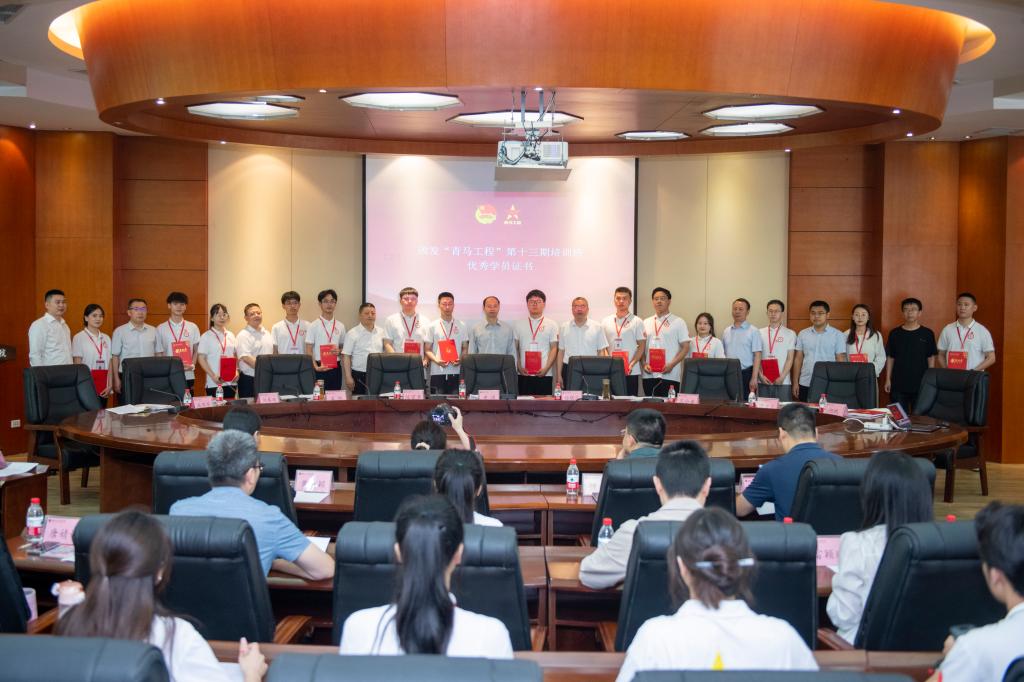 团委书记成华军向党委汇报“青马工程”第十三期培训情况,第十三期、第十四期青马学员代表江开贵、王元昊发言。“青马工程”领导小组成员及青马学员和小组导师参加仪式。