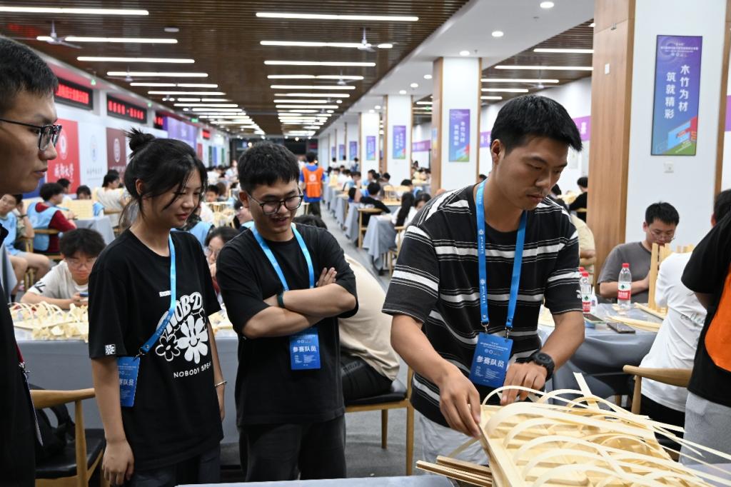 本届比赛为期4天,结构组赛题为“考虑水平振动的高耸塔式结构设计与模型制作”,以承受水平荷载和竖向荷载的塔式结构为对象,要求在比赛现场设计制作一个塔式结构模型,承受水平荷载与竖向荷载。赛题以多种荷载工况以及模型高度为主要难点,考察参赛选手对不同荷载工况组合的分析与计算能力,使其更具现实工程意义。