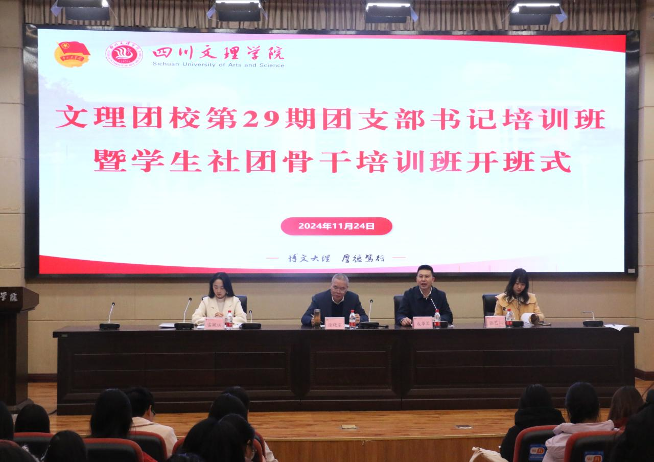 11月24日,文理团校第29期团支部书记培训班暨学生社团骨干培训班在莲湖校区举行。党委副书记徐晓宗出席开班式并讲话,团委书记成华军主持开班仪式。