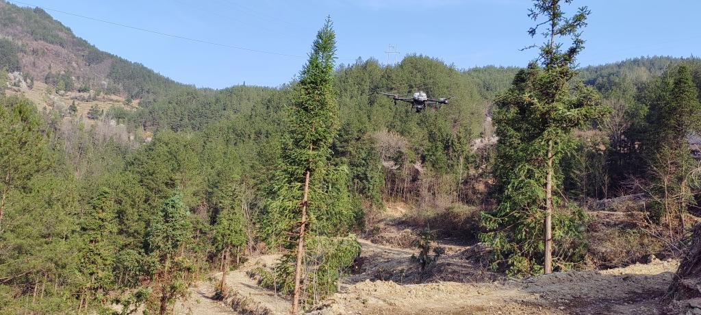 杉林湾村大田坡组的撂荒地存在地块分散、坡度陡峭等复杂地形条件,传统人工复耕不仅难度大,而且成本高昂,严重制约了土地资源的有效利用和农业生产的发展。面对这一挑战,无人机研究团队充分发挥专业技术优势,采用先进的无人机测绘建模技术,对撂荒地进行了全面、精准的“空中扫描”。通过无人机搭载的高精度传感器和智能测绘系统,团队成功识别出80余亩适宜播种的区域,为后续的精准播种作业奠定了坚实基础。