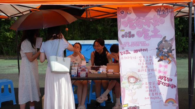 文化创意集市集创新、传承与商业实践于一体。文化产业管理专业学生携手校内其他专业学生,将课堂所学转化为市场实践,原创50多个手作、文化衍生品等商品集市。特别设置非遗苎麻技艺展示区和竹编体验区,让参与者近距离感受传统工艺的魅力。