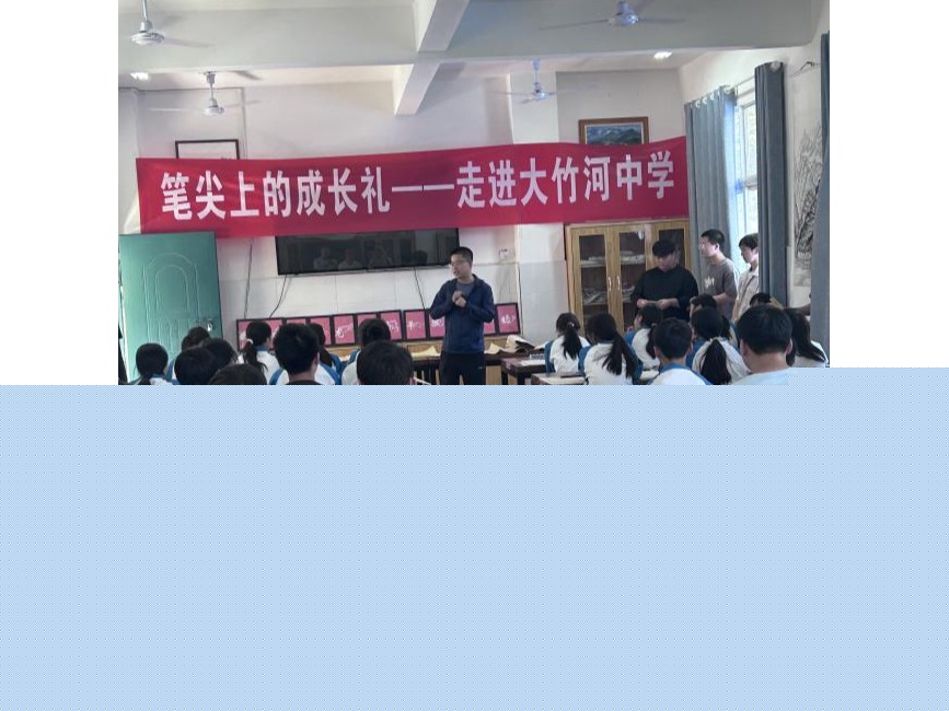6月16日,我院书法教研室副主任郭岩、专业教师陆峰偕9名学生走进万源市大竹河中学,开展中小学书法浸润活动。