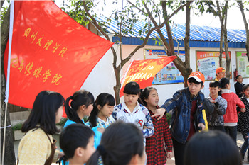 志愿活动中,播音与主持艺术专业志愿者充分发挥专业特点,通过培训小主持人站姿、教读趣味绕口令环节,充分活跃现场气氛,带动孩子们学习的积极性。广播电视编导专业志愿者,则通过其摄影摄像技术,记录这段美好时光,定焦最美笑容。文化产业管理专业的志愿者也通过活动策划、现场组织合唱《童年》、齐跳《小苹果》环节拉近了志愿者与孩子们的距离,现场气氛和谐欢快、笑声不断。