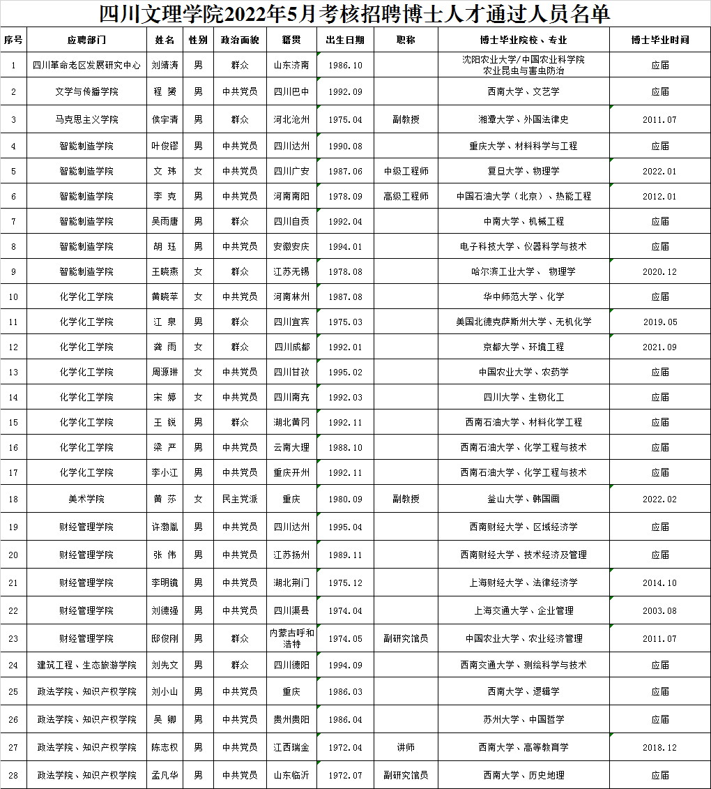 按照《pp电子官方网站2022年博士人才招聘公告》,经过初试、复试考核程序,现将pp电子官方网站2022年5月考核招聘博士人才复试通过人员名单予以公布,请报考者注意查阅。