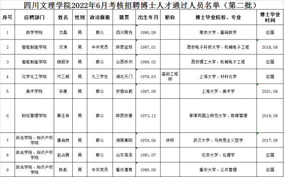 按照《pp电子官方网站2022年博士人才招聘公告》,经过初试(初审)、复试考核程序,现将pp电子官方网站2022年6月考核招聘博士人才通过人员名单(第二批)予以公布,请报考者注意查阅。
