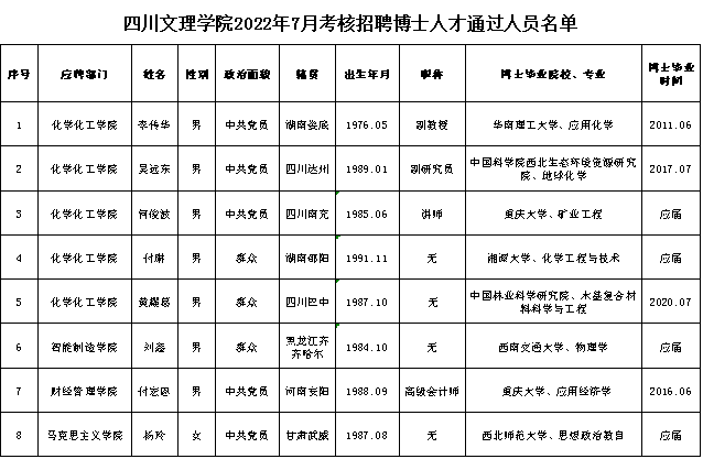 按照《pp电子官方网站2022年博士人才招聘公告》,经过初试(初审)、复试考核程序,现将pp电子官方网站2022年7月考核招聘博士人才通过人员名单予以公布,请报考者注意查阅。