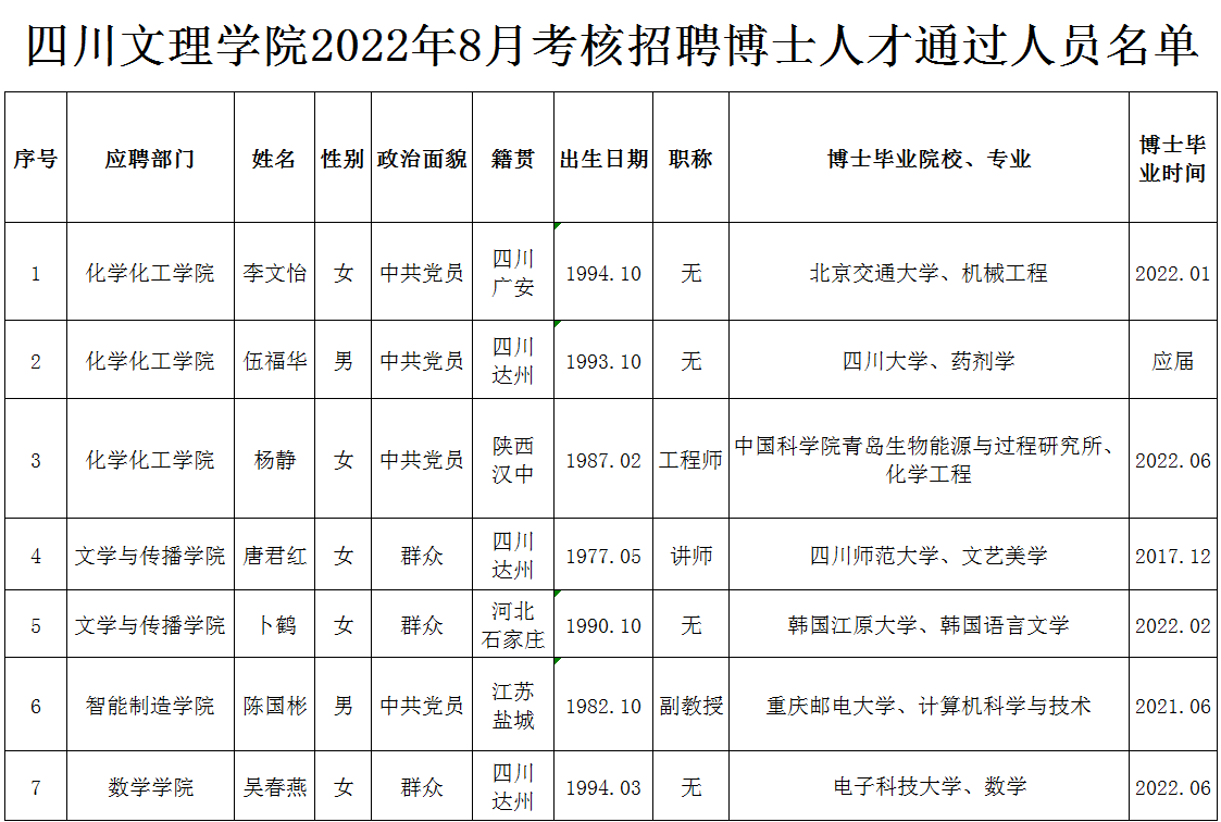 按照《pp电子官方网站2022年博士人才招聘公告》,经过初试(初审)、复试考核程序,现将pp电子官方网站2022年8月考核招聘博士人才通过人员名单予以公布,请报考者注意查阅。