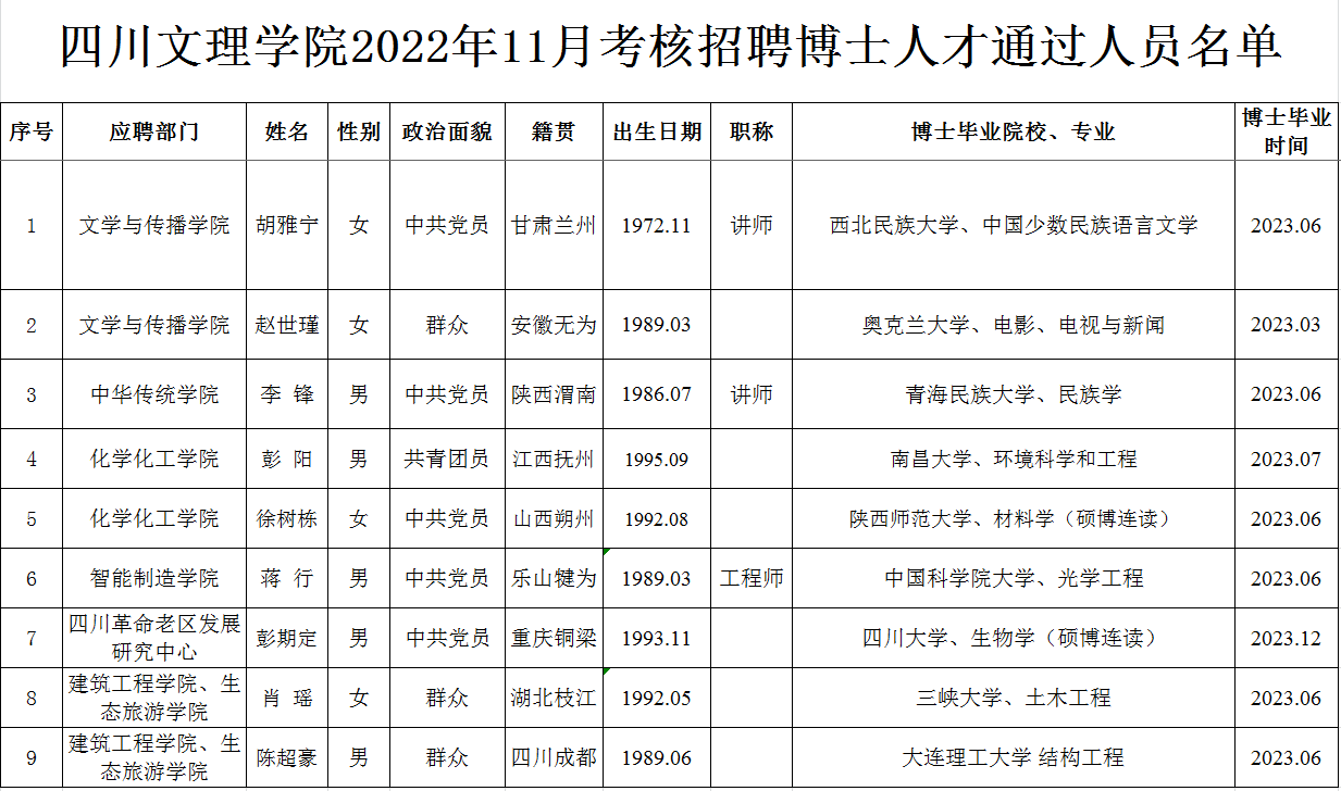 按照《pp电子官方网站2023年博士人才招聘公告》,经过初试(初审)、复试考核程序,现将pp电子官方网站2022年11月考核招聘博士人才通过人员名单予以公布,请报考者注意查阅。
