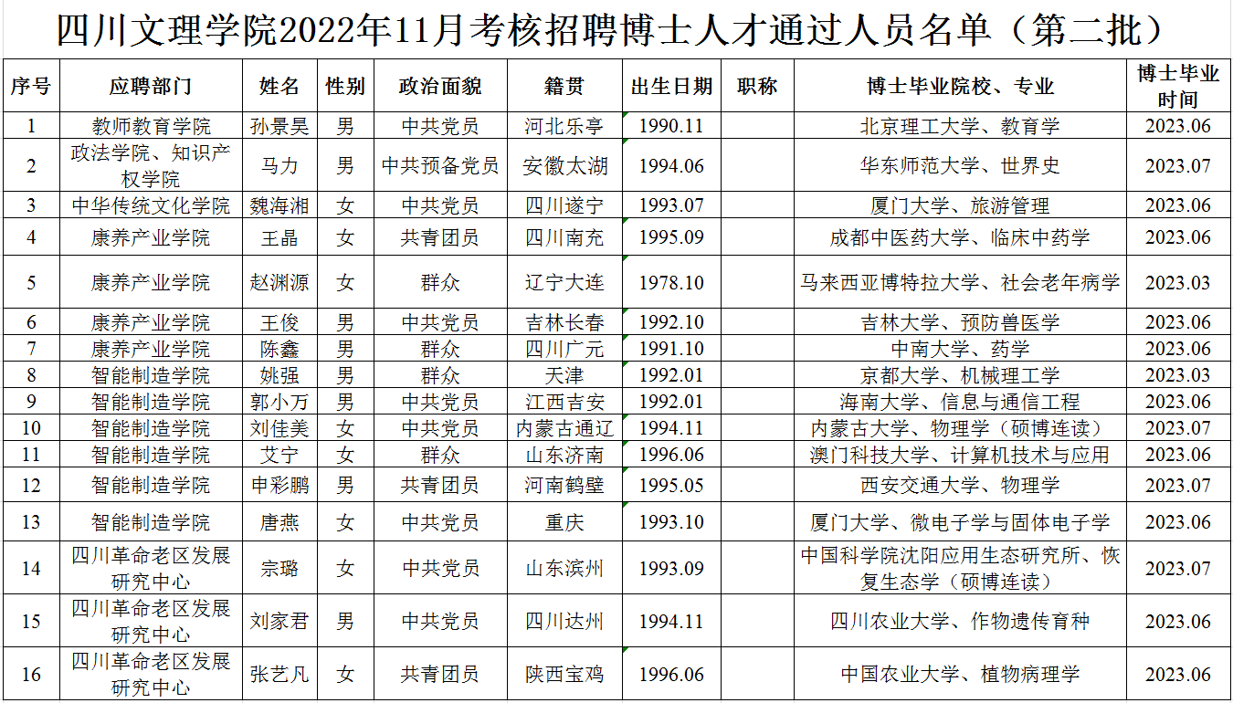 按照《pp电子官方网站2023年博士人才招聘公告》,经过初试(初审)、复试考核程序,现将pp电子官方网站2022年11月考核招聘博士人才通过人员名单(第二批)予以公布,请报考者注意查阅。