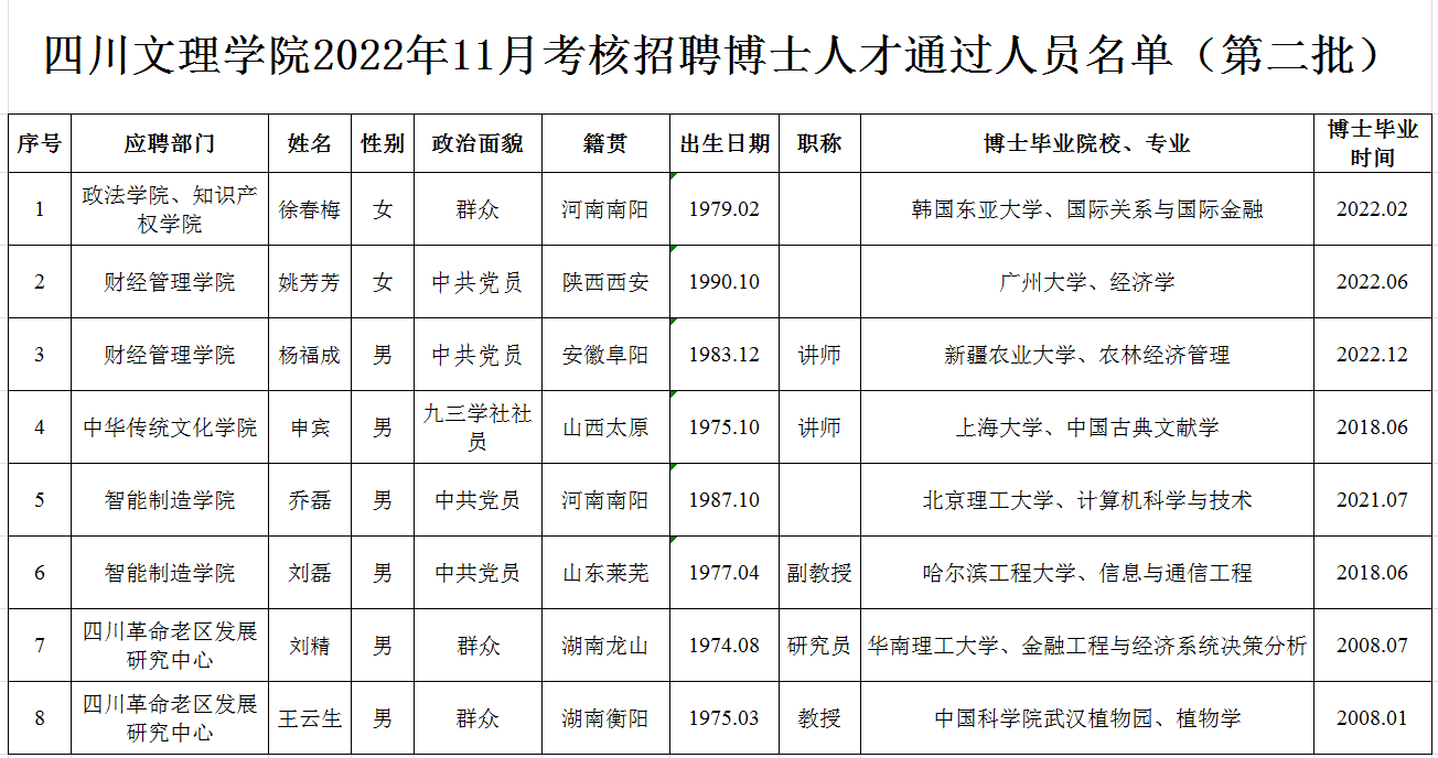 按照《pp电子官方网站2022年博士人才招聘公告》,经过初试(初审)、复试考核程序,现将pp电子官方网站2022年11月考核招聘博士人才通过人员名单(第二批)予以公布,请报考者注意查阅。