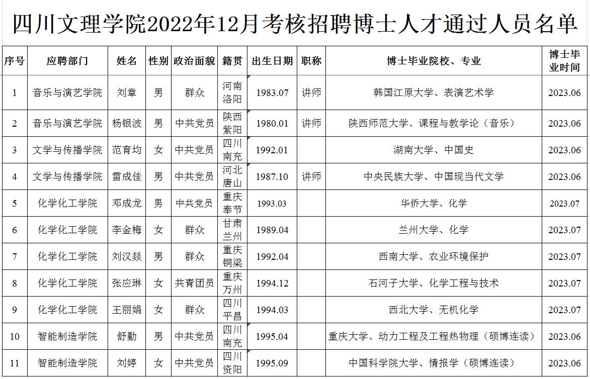 按照《pp电子官方网站2023年博士人才招聘公告》,经过初试(初审)、复试考核程序,现将pp电子官方网站2022年12月考核招聘博士人才通过人员名单予以公布,请报考者注意查阅。