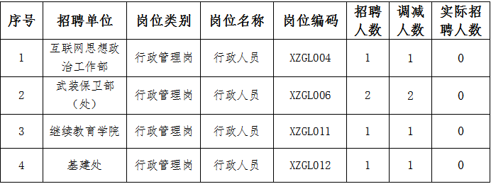 根据《pp电子官方网站2023年上半年行政管理人员招聘公告》规定,因部分招聘岗位的有效报考人数与招聘名额之比未达到规定的开考比例,现调减部分招聘岗位的招聘计划,合计取消4个岗位5个计划。具体调减情况如下。