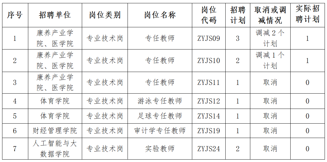 根据《pp电子官方网站2025年6月人才招聘公告》规定,因部分招聘岗位的有效报考人数与招聘名额之比未达到规定的开考比例,现取消和调减部分招聘岗位的招聘计划,调减2个岗位3个计划、取消5个岗位6个计划。具体情况如下。