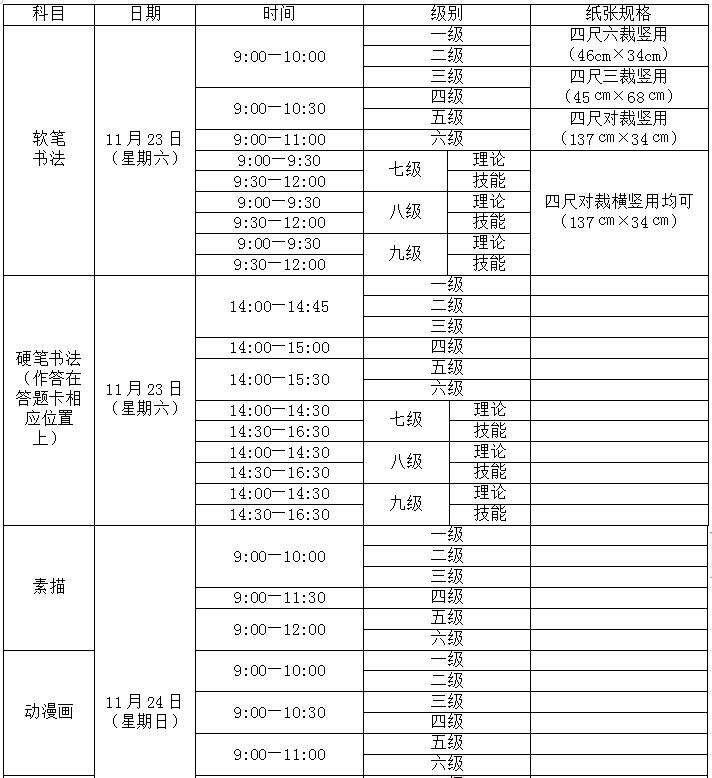 2019年下半年书画等级考试将于11月23日至24日举行,现将我省报考有关事宜通告如下。