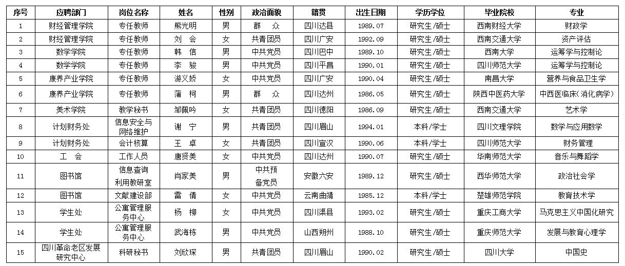 按照《pp电子官方网站2017年6月非事业单位编制人员考核方案》,由学校纪委监督,考核小组对应聘pp电子专任教师、管理岗、教辅岗人员进行了考核。经学校研究,现将考核结果公示如下,公示期限为3天(2017年6月29日至2017年7月1日)。公示期间接受社会监督和举报,举报者应以真实姓名书面或电话向pp电子官方网站人事处或纪委反映。监督举报电话:0818-2790077、0818-2790019 邮箱:scwlrsc@126.com、jwjsc@sohu.com。