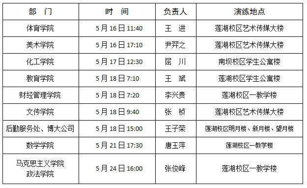 各二级单位: 为进一步增强师生员工的防震安全意识,有效提升师生应急避险能力和自救能力,根据学校应急疏散演练安排,近期,部分二级单位将进行防震疏散演练。届时,演练场地将拉响应急警报。为避免引起师生恐慌,影响正常教学和工作秩序,现将应急演练相关情况通告如下: