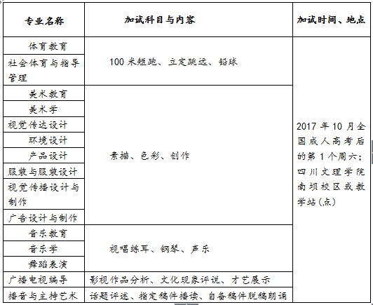 五、艺术、体育类专业加试科目、时间、地点一览表