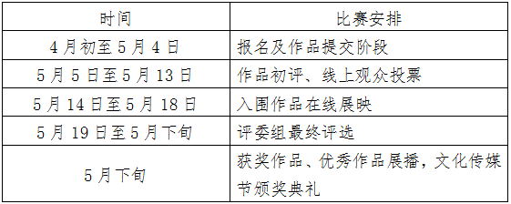 ⑤时间长度:公益广告类3分钟以内;其他类型作品15分钟以内。