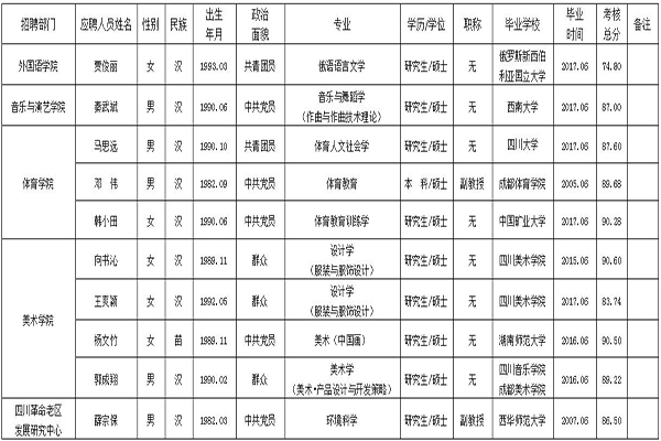 按照《pp电子官方网站2017年人才招聘公告》,由学校纪委监督,考核小组对应聘pp电子的专任教师、科研人员进行了考核。经学校研究,现将考核结果公示如下,公示期限为7个工作日(2017年1月16日至2017年1月24日)。公示期间接受社会监督和举报,举报者应以真实姓名书面或电话向pp电子官方网站人事处或纪委反映。监督举报电话:0818-2790077、0818-2790019 邮箱:scwlrsc@126.com、jwjsc@sohu.com。