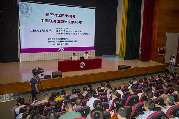 6月15日上午,中国社会科学院经济研究所研究员、博士生导师胡家勇先生应邀作客秦巴讲坛,畅谈“中国经济改革与发展40年”。党委书记王成端教授主持报告会。